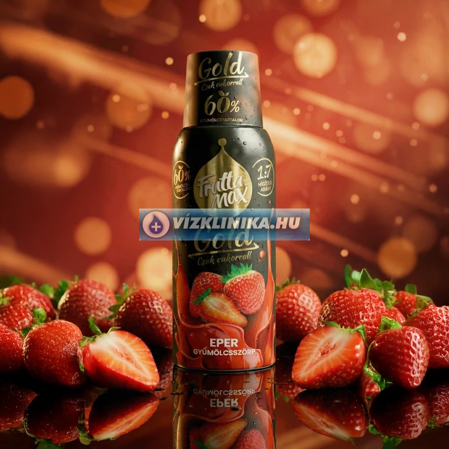 FruttaMax Gold eper gyümölcsszörp – 60% eper, csak kristálycukorral, 1:7 hígítási aránnyal
