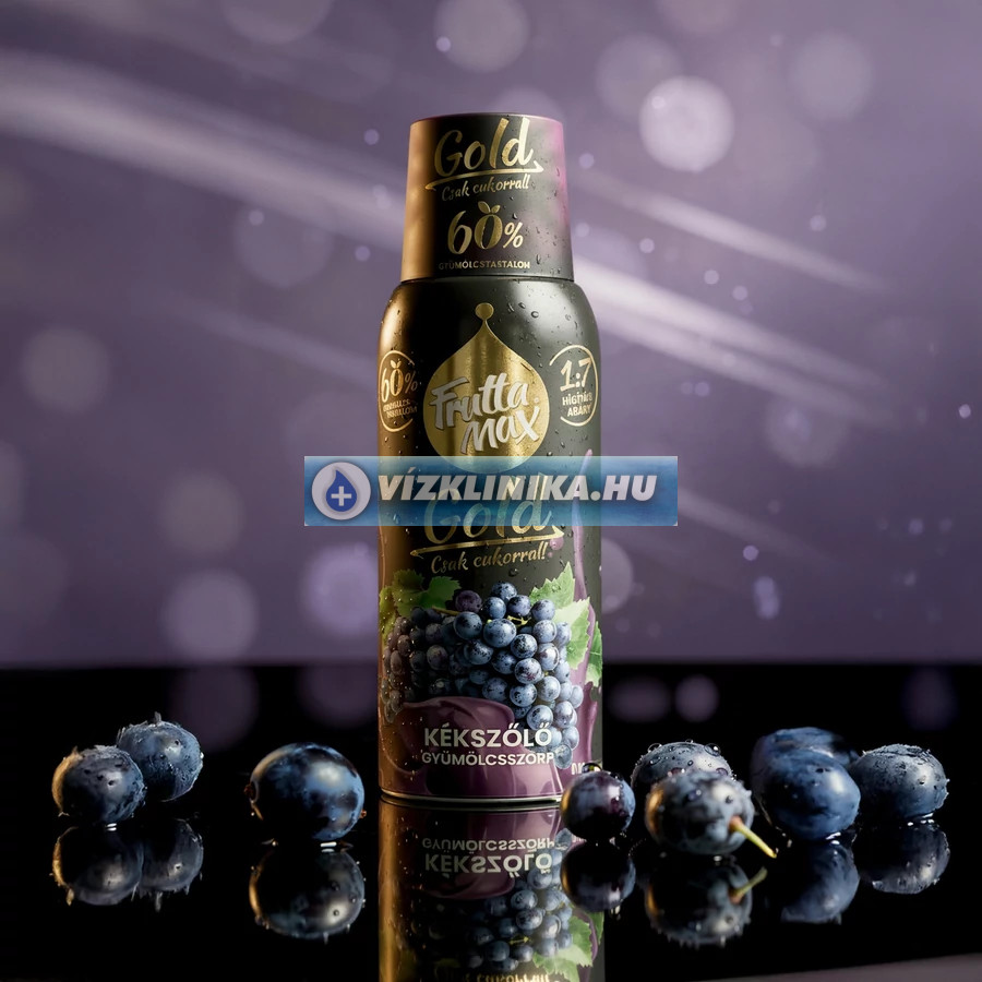 FruttaMax Gold kékszőlő gyümölcsszörp – 60% kékszőlő, csak kristálycukorral, 1:7 hígítással.